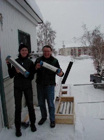 Adriane Ethier and Pat Brennan are very happy about the first cores from the Mallik5L-38 well.