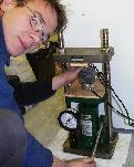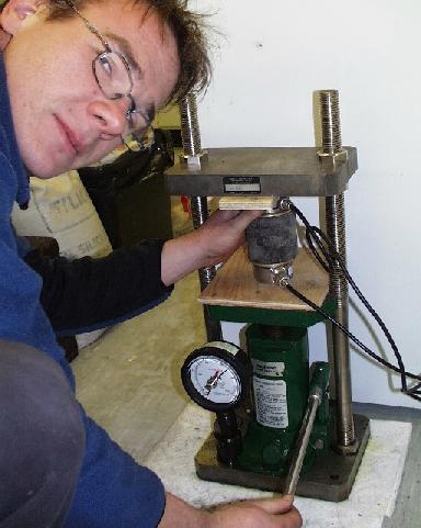 Michael Riedel (GSC) and his geophysical index investigations of core samples.