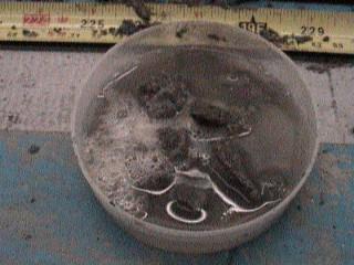 Test for the presence of gas hydrate. In water the sediment warms up very fast and degases the methane. The result are the characteristic bubbles.