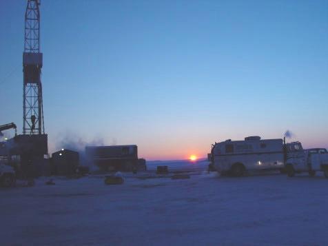 Tomoseis logging truck at sunrise stationed over 4L-38.