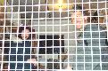 Taking samples in the frozen cage: Adrienne Ethier and Dr. Ian Clark (University of Ottawa). Adrienne will extract porewater of the samples from the core run for isotopic analysis using