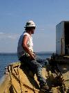 | UN_5033_2_A_photo_7.jpg | A salvaged army floating bridge, transformed into the "Ortiz" rigs up for towing the R/V Kerry Kelts. |